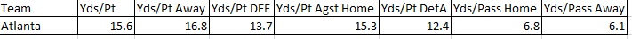 While many will be quick to put Atl back into the elite group after their week 1 win, I think it is still debatable whether or not ATL has fixed their major issues from last year which were the defence and offensive line (Jake Mathews expected to miss Cin game). What isnt debatable is that this is a game where we get a team that is significantly worse road team playing a team that is significantly better home team. For ATL we see both sides of the ball suffer on the road.